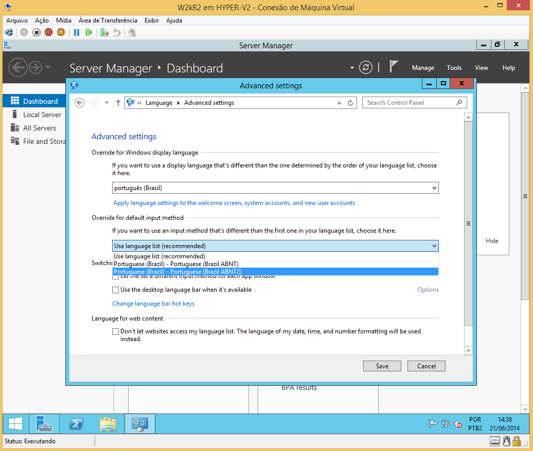 Selecione: Português (Brasil) – Português (Brasil ABNT2).