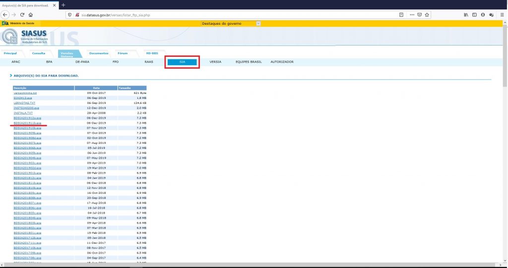 Fique atento que no momento do envio após homologar, verifique qual o kit mais atual disponibilizado pelo DataSUS, acessando o site: http://sia.datasus.gov.br/versao/listar_ftp_sia.php